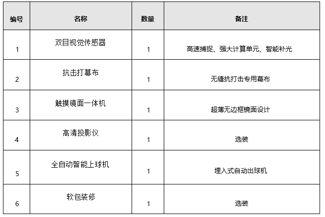 包含软件,服务器,全自动上球系统,打击垫,幕布,草皮,投影,传感器,操作屏;服务包含前期高尔夫区域的规划设计,装修施工指导,后续运输,安装,调试培训。